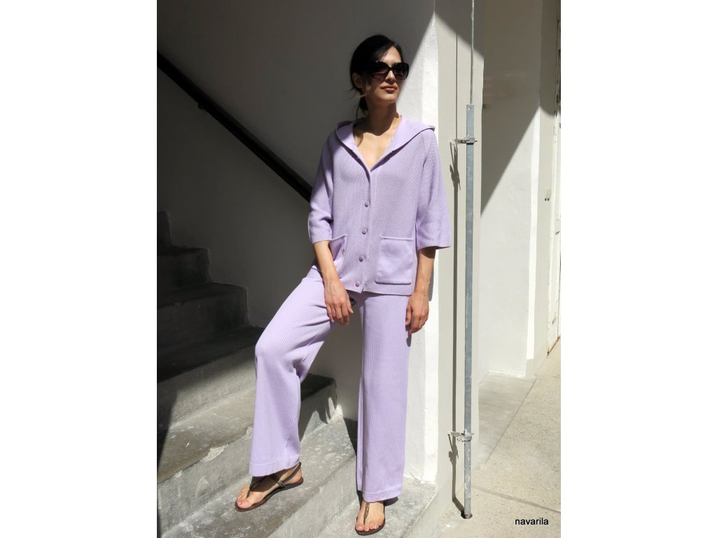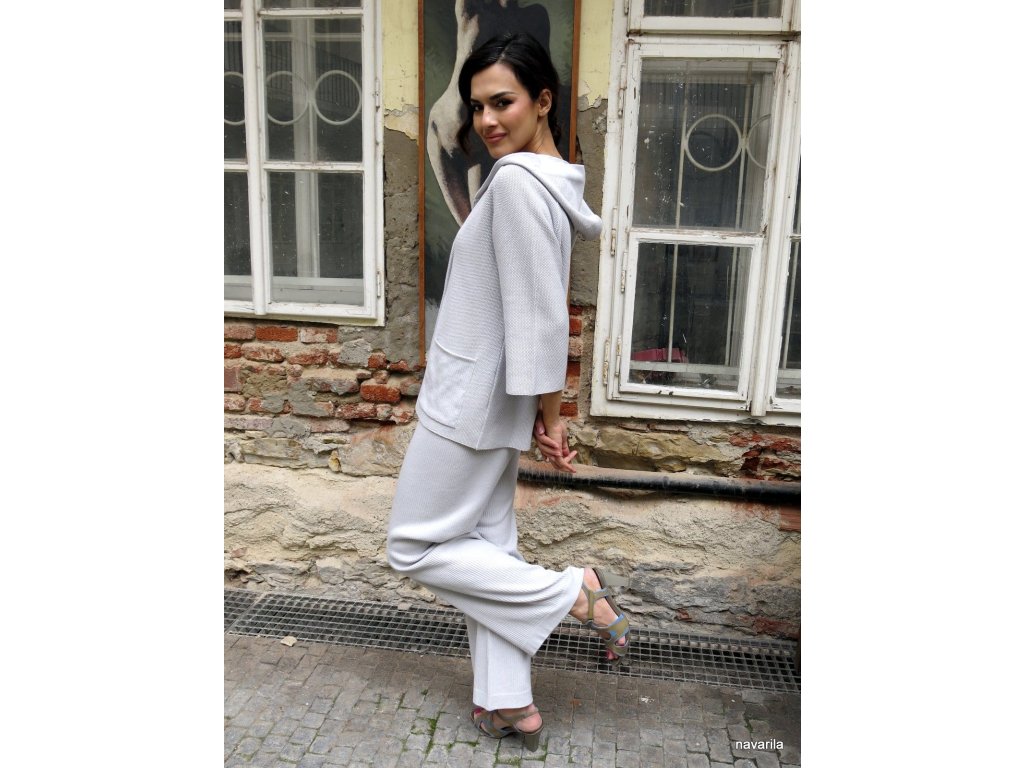 Široké a pohodlné kalhoty CLYDE jsou pletené z příjemného bavlněného úpletu, s jemným proužkem, a vy je budete milovat. V pase jsou do gumy. V kombinaci se stejně barevným, hruběji pleteným kabátkem BONNIE s kapucí a 3/4rukávy, se stanou vaším parťákem pro jarní i letní dny, pro všední den, na dovolenou i do společnosti. Snadná údržba v pračce na jemný program, do 30 st. Vel S, M, L, XL . Možno objednat i jako komplet se slevou 495 Kč: Nabízíme v mnoha barevných variantách, na objednávku do 10 dnů: A- světlounce šedá B- světlounce růžová C- khaki D- tmavě šedá E- černá