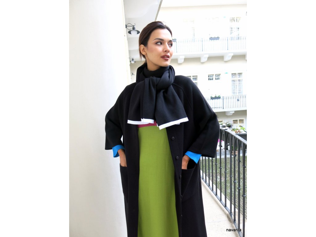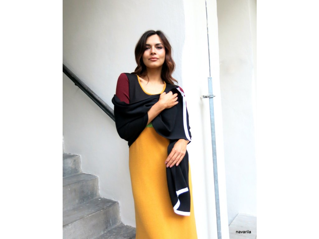 Nepostradatelná maxišála/pléd pletená z biobavlny, rozměry 190 x 50 cm, zakončení na obou koncích bílým lemováním. Pletená ze směsové příze ve složení 50%bavlna a 50% polyesteru. Úplet je již předepraný, nekouše, nežmolkuje- údržba velice praktická - praní v pračce na jemný program, POTOM PROPAŘIT ŽEHLIČKOU.