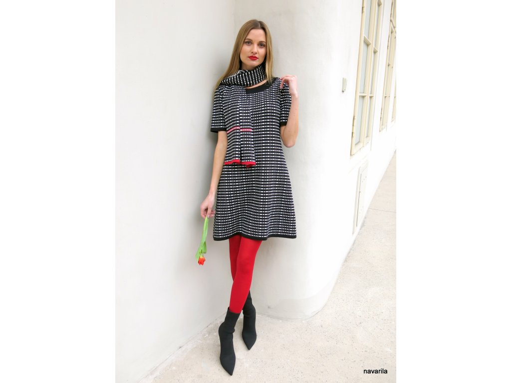 LÁSKA - pletené šaty s bílým žakárovým vzorem