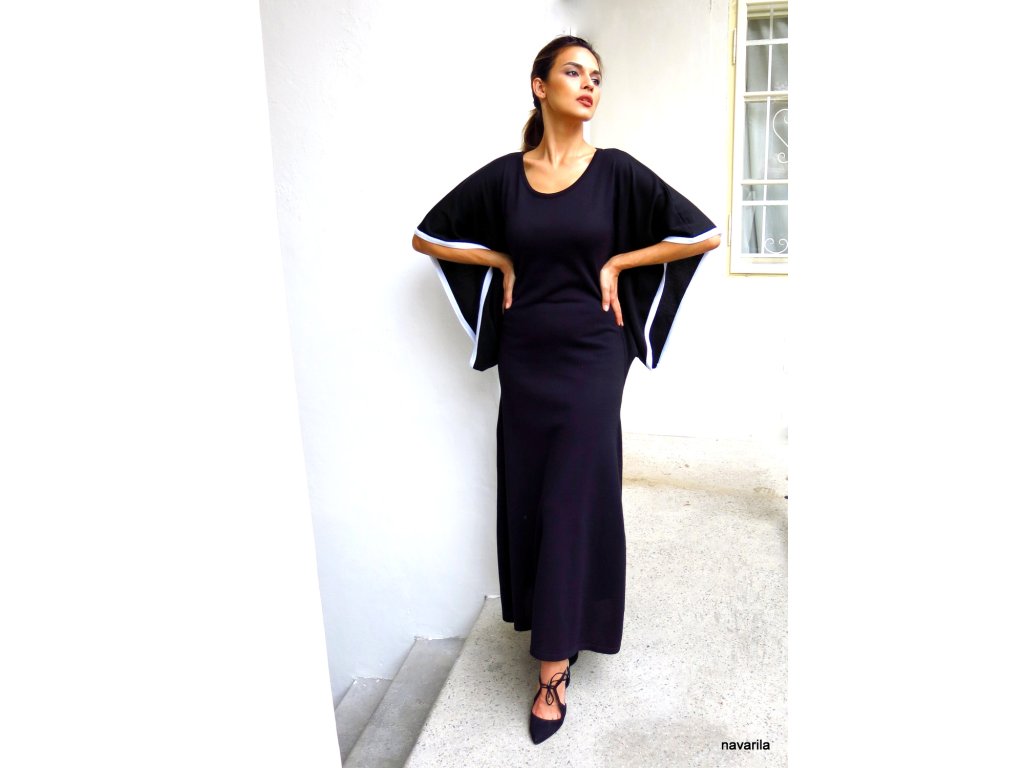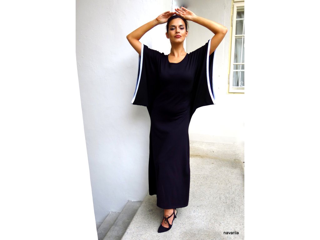 MYOKO-maxišaty kimonové černé s bílými lemy
