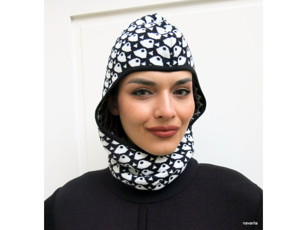 Módní doplněk čepice kukla Hlavní barva černobílá Materiál bavlna Určení muži unisex ženy Technika výroby pletení Materiál: textil bavlna směs úplet Styl elegantní extravagantní pro volný čas retro bohémský