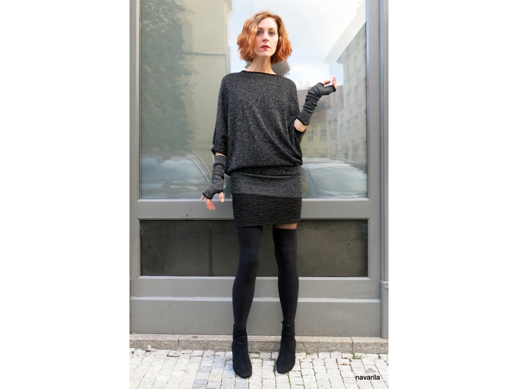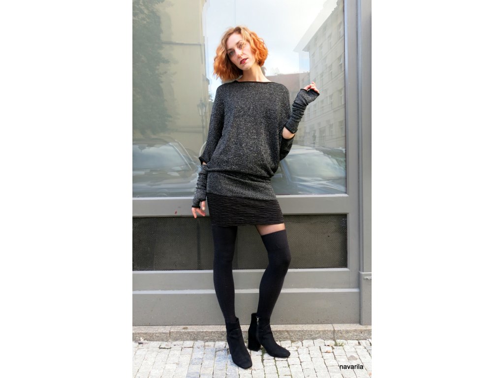 Jednoduchá tvarem, bohatá svým využití je tato tunika, s 3/4 rukávy a s lodičkovým výstřihem. Pletená z efektní příze s lesklou nitkou, takže je možné ihned vyrazit do společnosti, do divadla, nebo na párty. Nabízíme v černé, nebo v červené variantě. Ke všem barevným variantám nabízíme společenskou šálu SETRA, pletenou zajímavým jakoby plisé vzorem, rozměry 200cmx60cm.