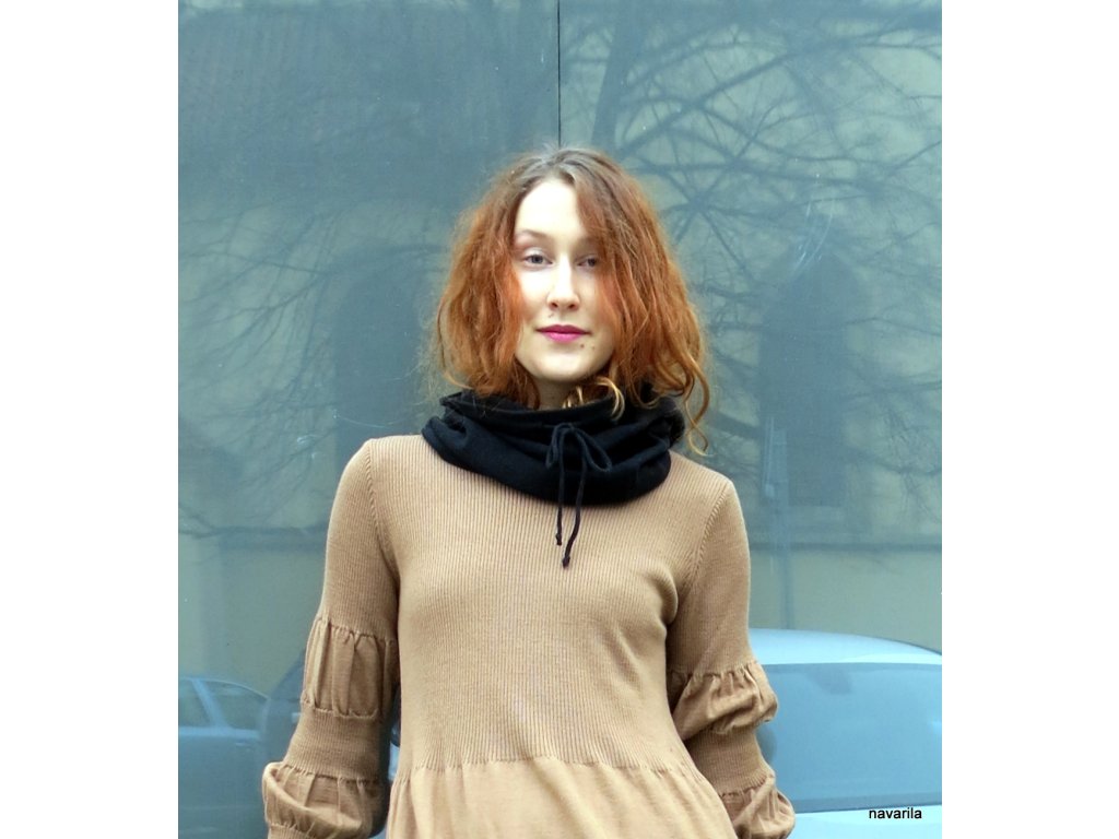 Módní doplněk nákrčník rouška Barevnost: černá hnědá Materiál: textil směs merino vlna/kašmír městský přírodní veselý