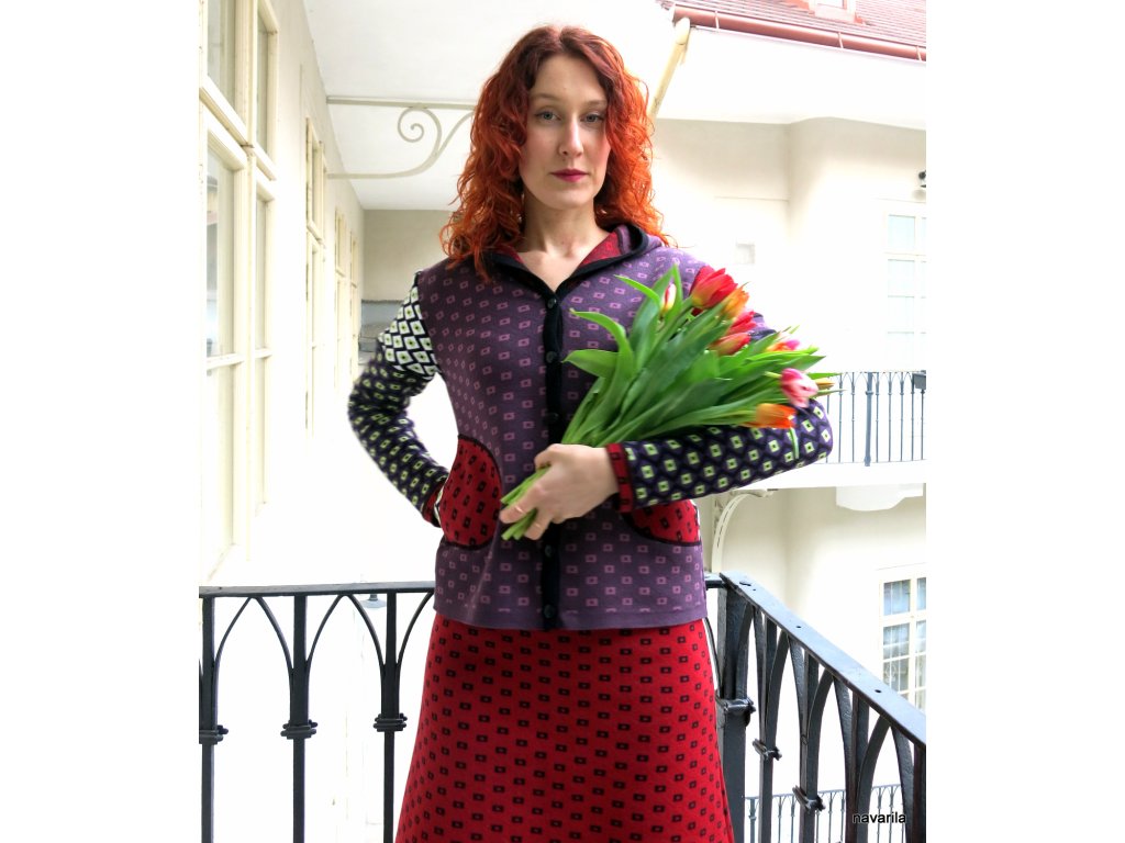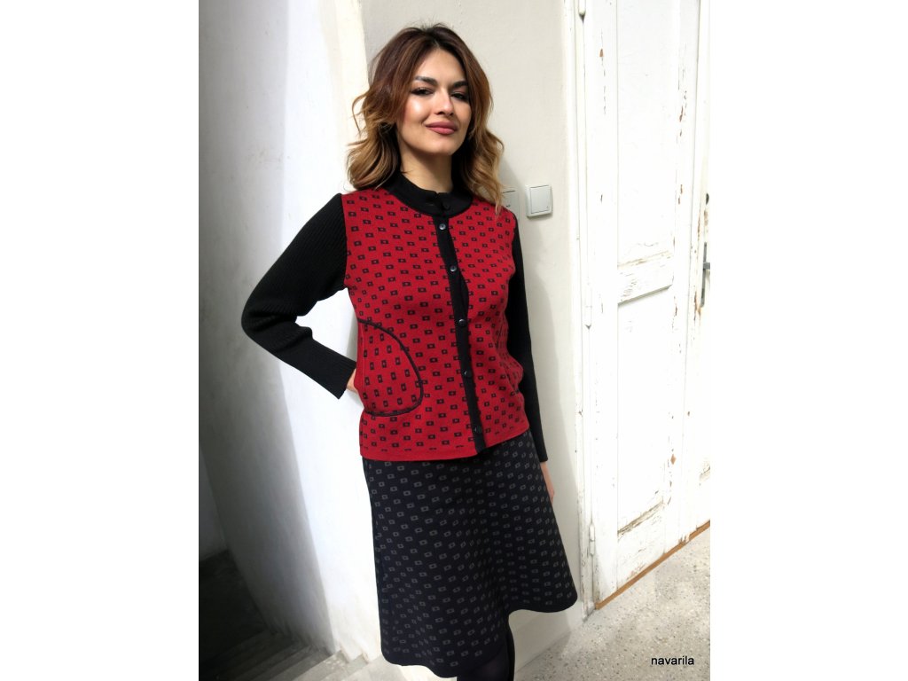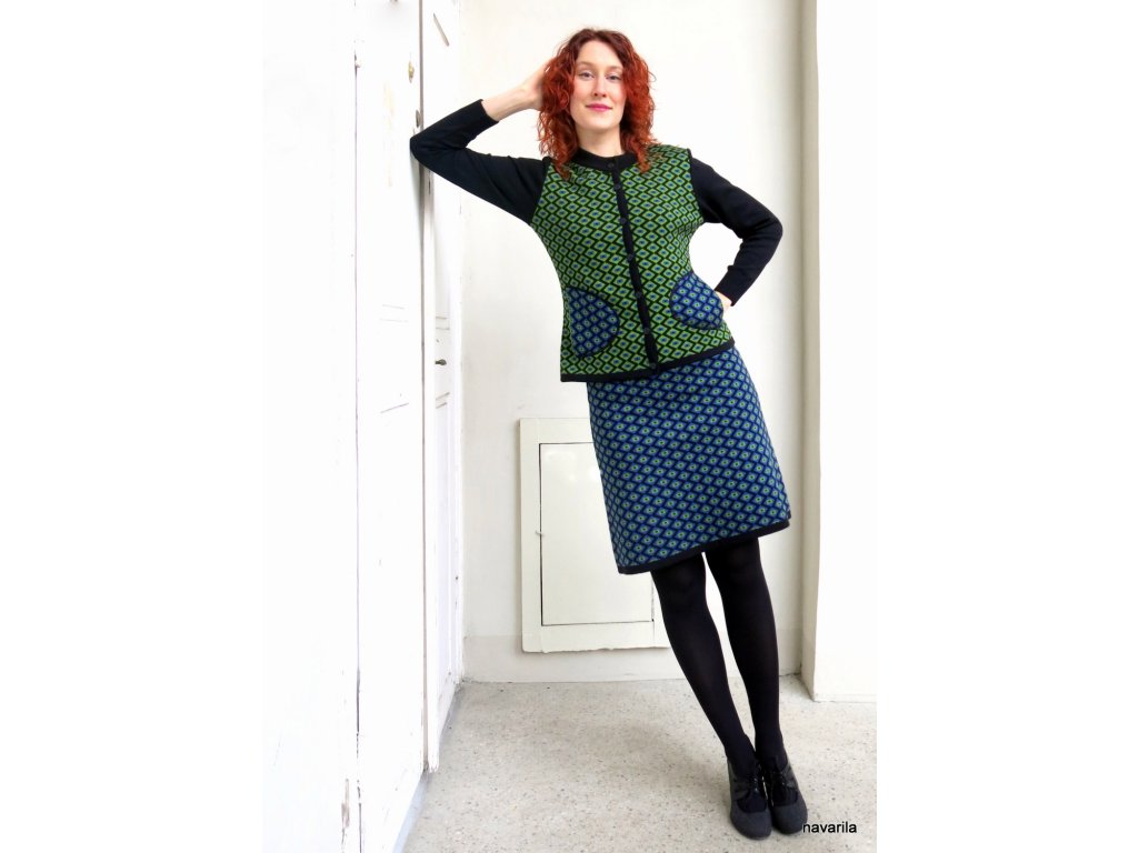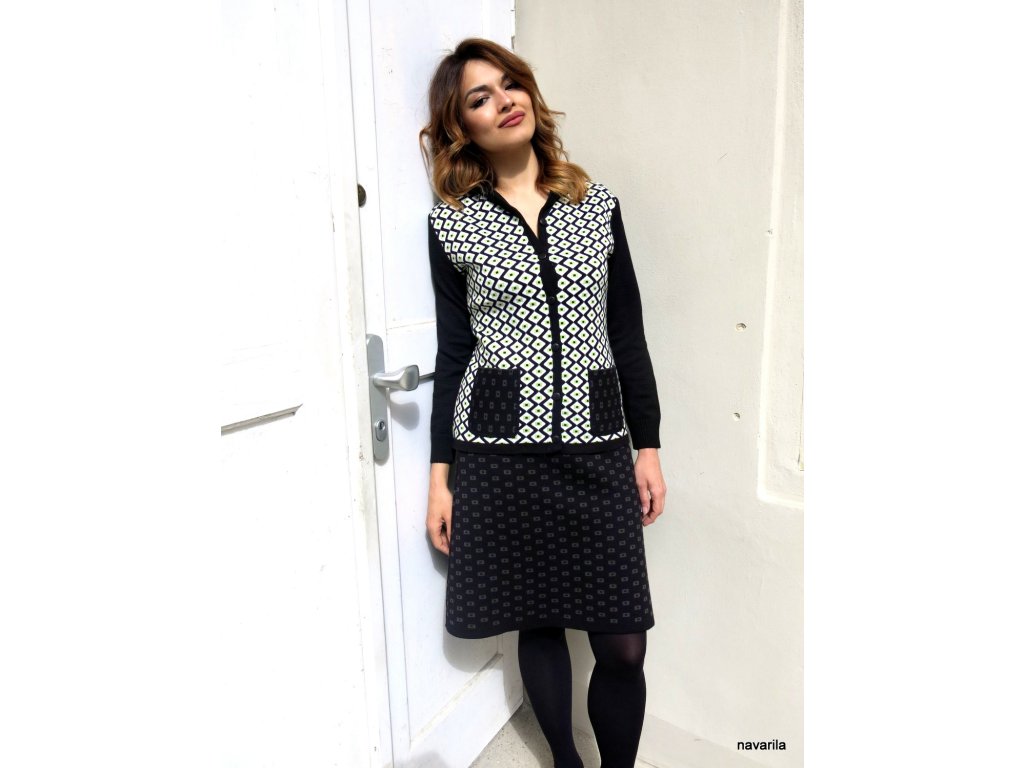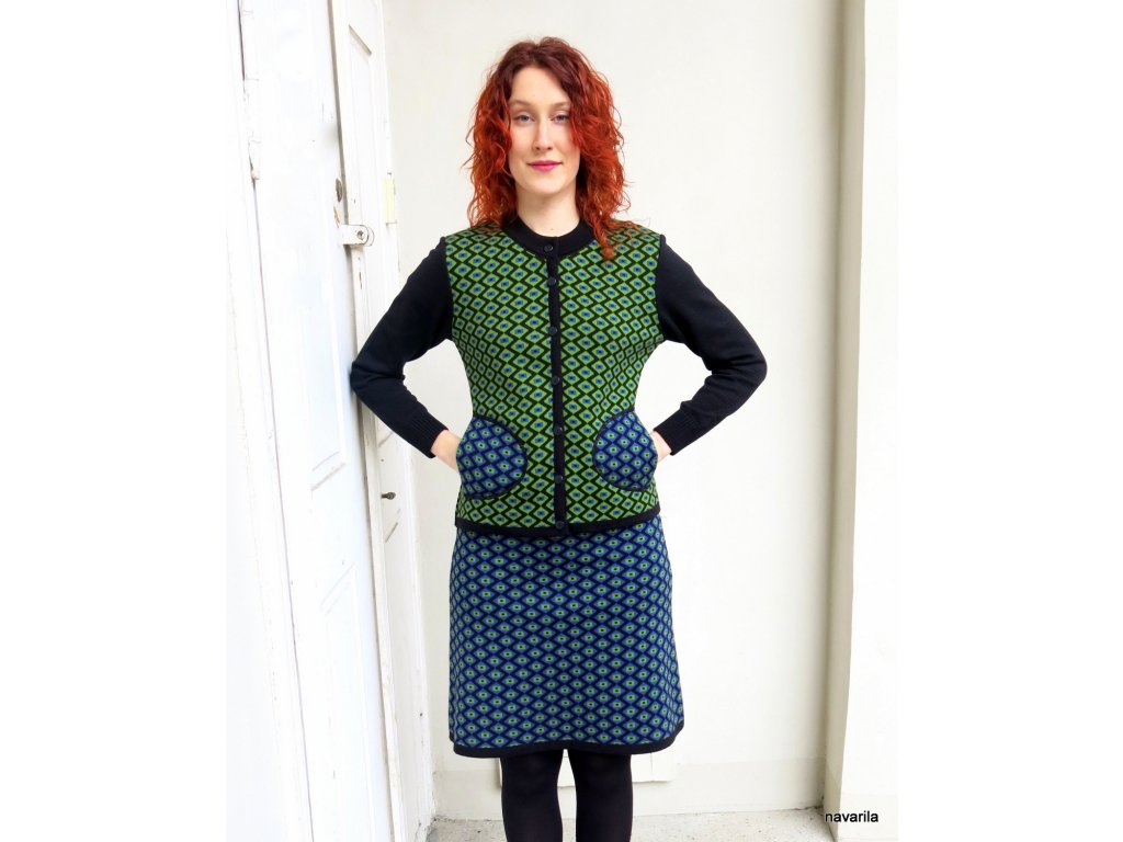 Sukně TIKA je veselá sukně ke kolenům áčkového střihu, pletená žakárovým vzorem, v pase dutinka s gumou. Nabízíme 4 barevné varianty: 1/černo/šedá 2/červeno/černá 3/zeleno/modrá/černá 4/modro/zeleno/černá Pleteno ze směsové příze ve složení: 50% bavlny a 50% polyesteru. Nekouše, nežmolkuje, údržba velice praktická - praní v pračce na jemný program. Velikosti S,M,L,XL
